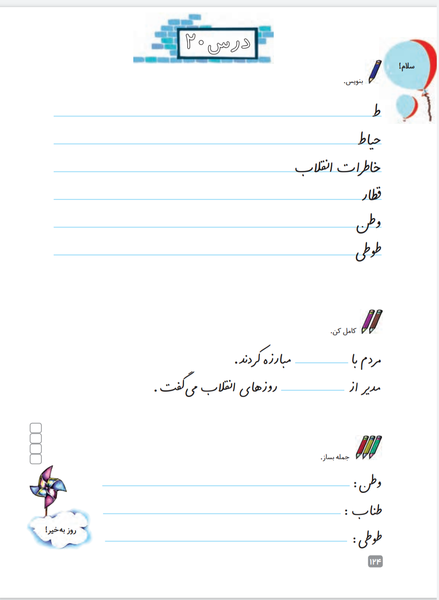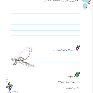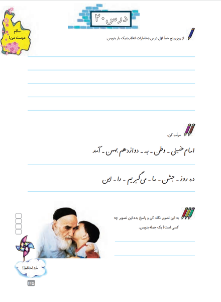 3- تمرین روان خوانی درس خاطرات انقلاب (بچه های خوبم متن این درس هم طولانی هست هم نیاز داره که کاملا اون رو متوجه بشید تا بتونید به سؤالات کتاب نگارش جواب بدید.پس حتما حتما چندین بار با دقت بخونید وآنچه در درس گفته بود رو برای مامان تعریف کنید.)