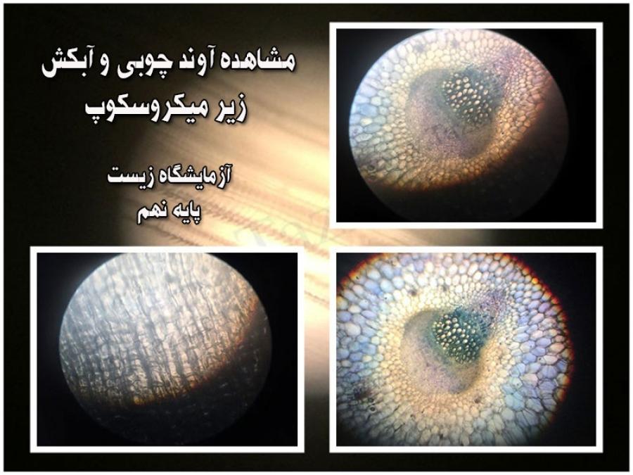 .دانش آموزان پایه نهم در آزمایشگاه زیست به مشاهده آوند چوبی و آبکش در ساقه گیاهان پرداختند. در این آزمایش دانش آموزان ابتدا با تهیه دو مقطع عرضی و طولی از ساقه کرفس، آوند چوبی و تفاوت آن با آوند آبکش را مشاهده نمودند. در انتها با مشاهده یک گل تک لپه با تفاوت ساختار و نحوه چینش آوندها در گیاهان تک لپه ای و دولپه ای آشنا شدند.