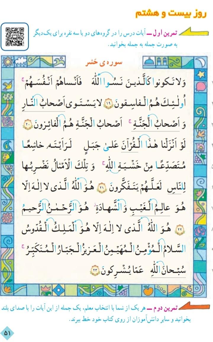 🌼پایه سوم،ص۵۱،سوره حشر،