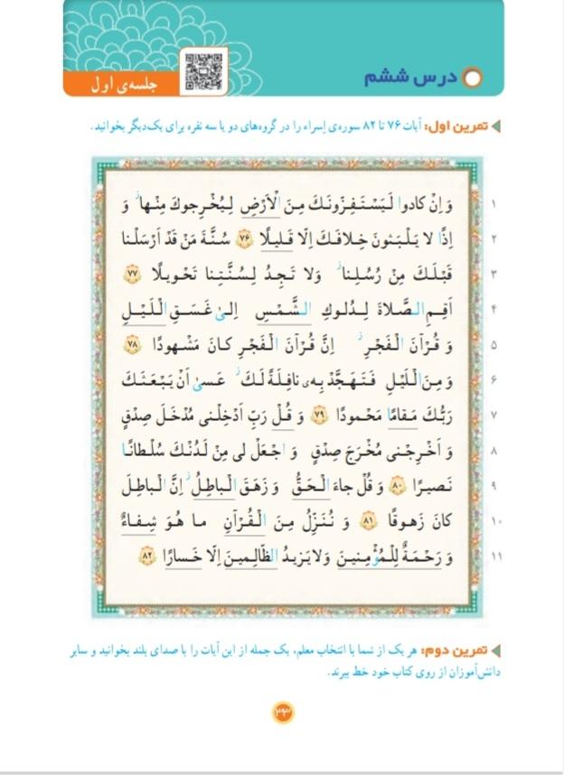 🌼پایه چهارم، ص ۳۳ ، سوره اسراء