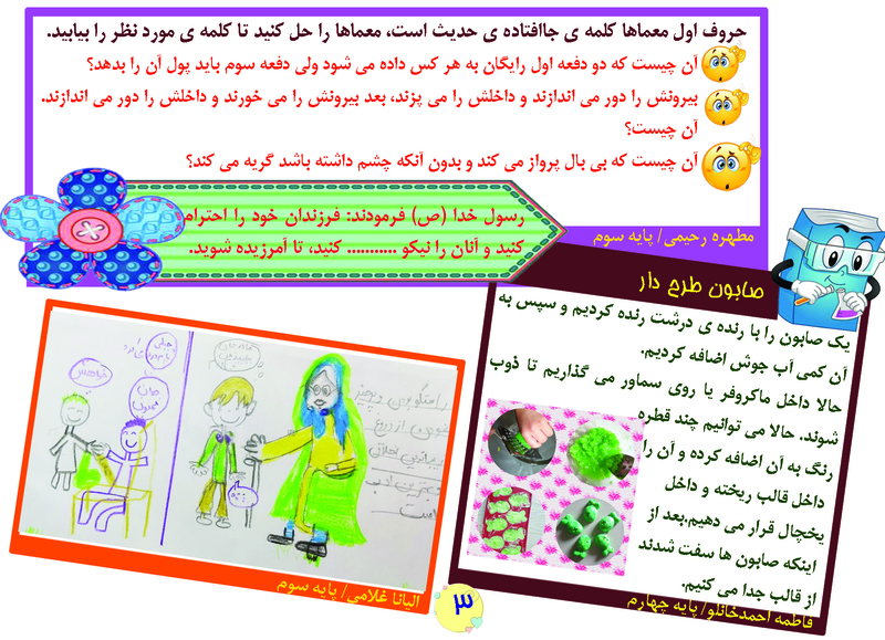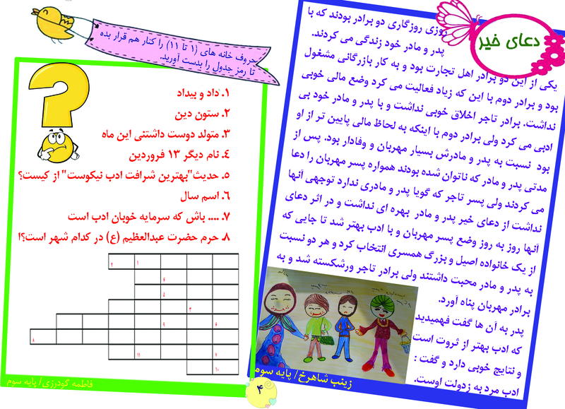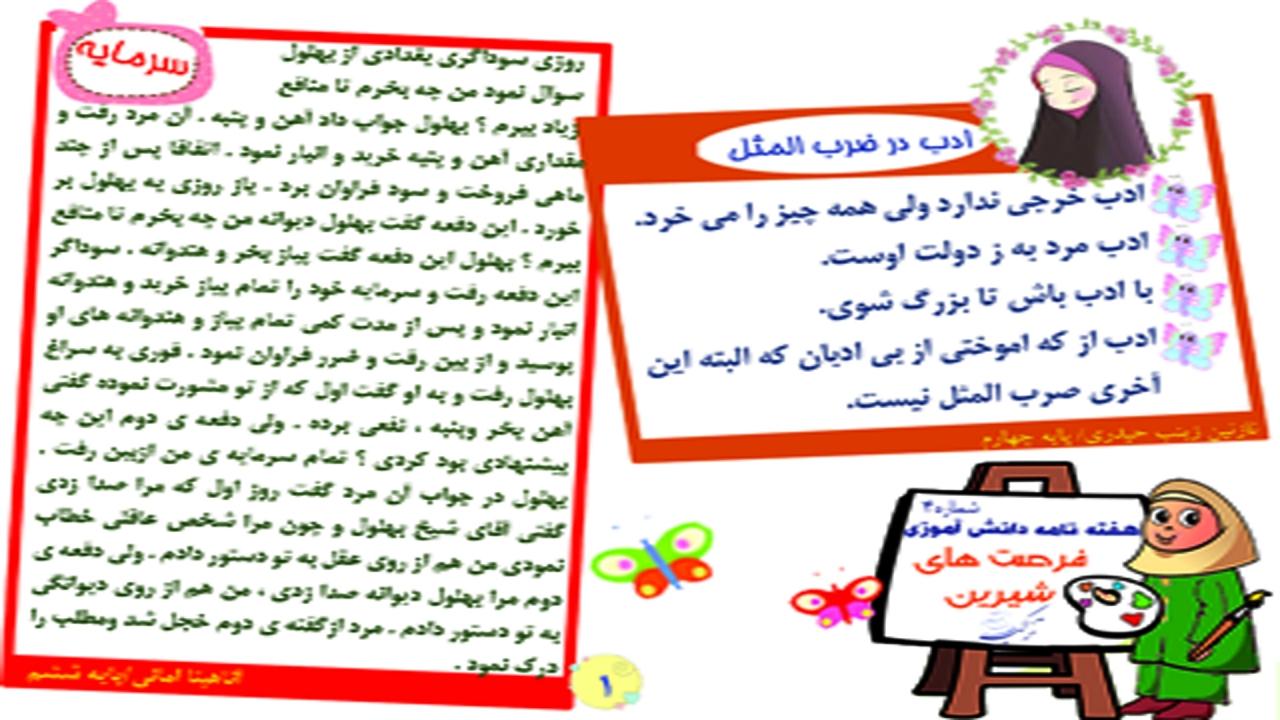 چهارمین شماره از هفته نامه دانش آموزی فرصت های شیرینفرصت های شیرین کاملا هفته نامه دانش اموزی است و مطالب آن توسط دانش آموزان تهیه می شود. برندگان مسابقه هفته نامه شماره قبل ، مطالب این هفته نامه را برای ما ارسال می کنند.