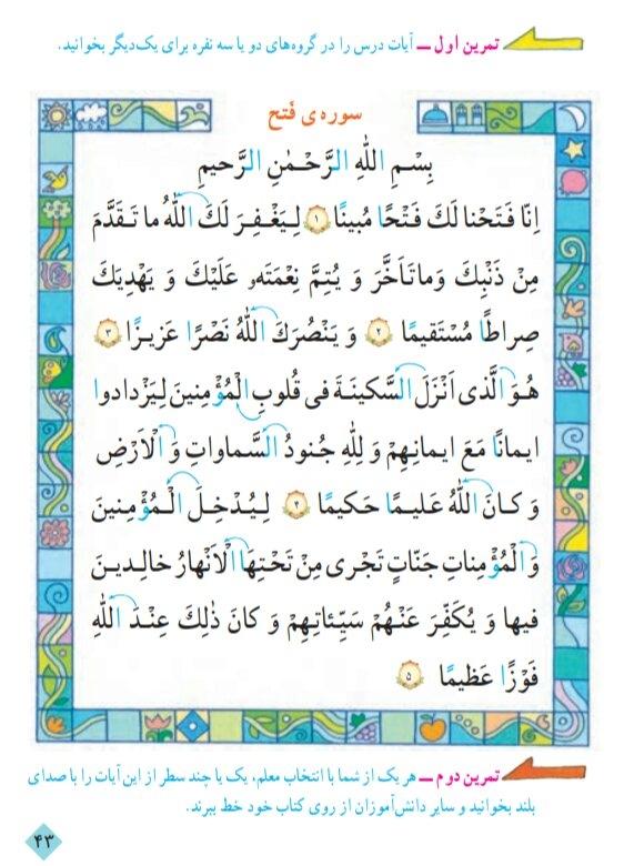 پایه سوم ، قرآن درسی ،سوره فتح ،ص ۴۳
