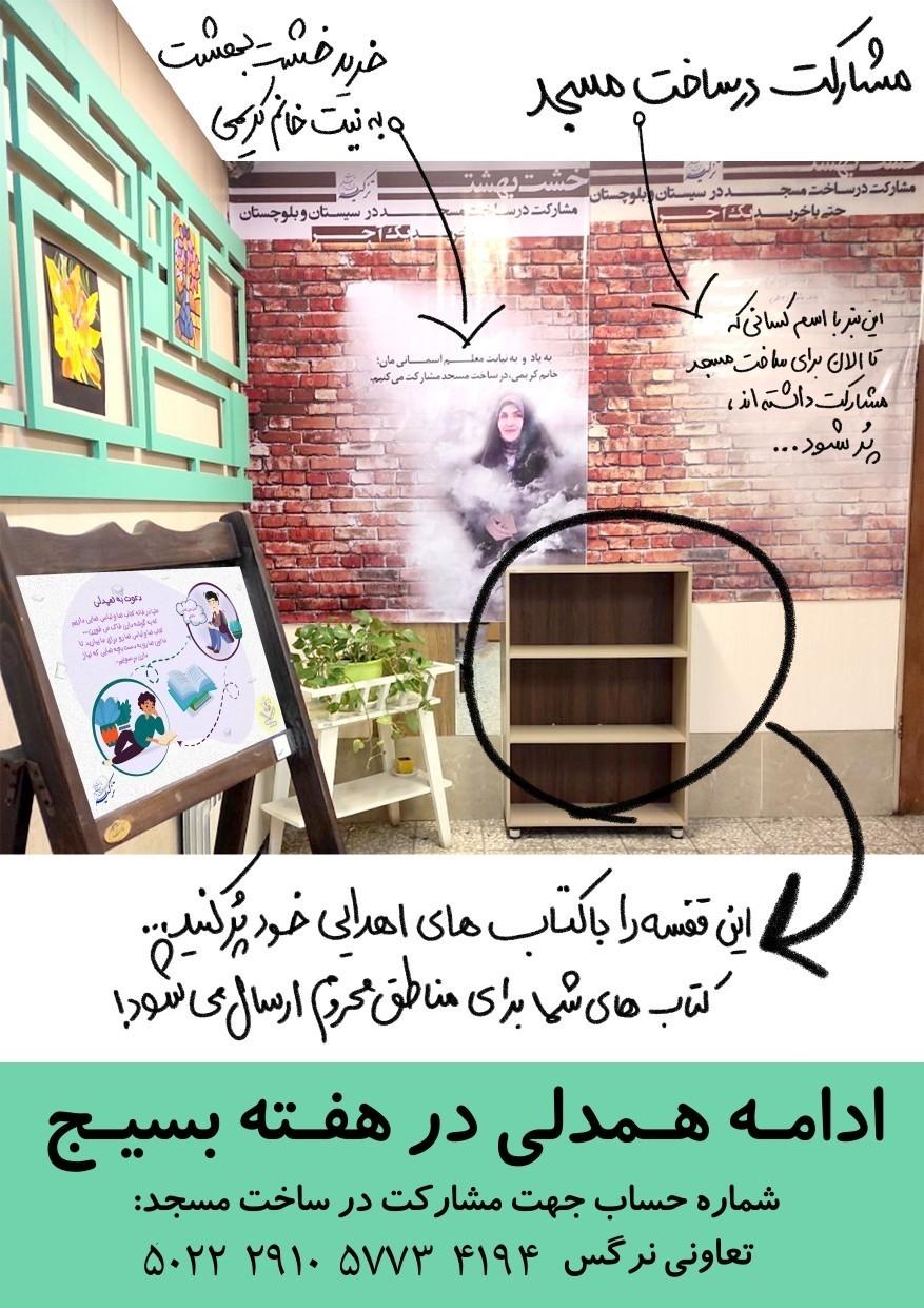 و با آغاز هفته بسیج این طرح را بسیجی وار و جهادی باهم ادامه دادیم.و دختران عزیزمان کتاب های خود را در قفسه ی تعبیه شده قراردادند.