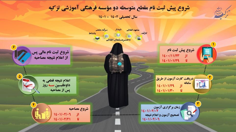 اطلاعیه پیش ثبت نام در مقطع متوسطه دوم تزکیهبه استحضار می رساند پیش ثبت نام مقطع متوسطه دوم در سال تحصیلی ۱۴۰۲-۱۴۰۱ از تاریخ ۱۴۰۰/۱۱/۲۳ الی ۱۴۰۱/۱/۲۹ بصورت غیرحضوری برای واجدین شرایط آغاز می شود.
